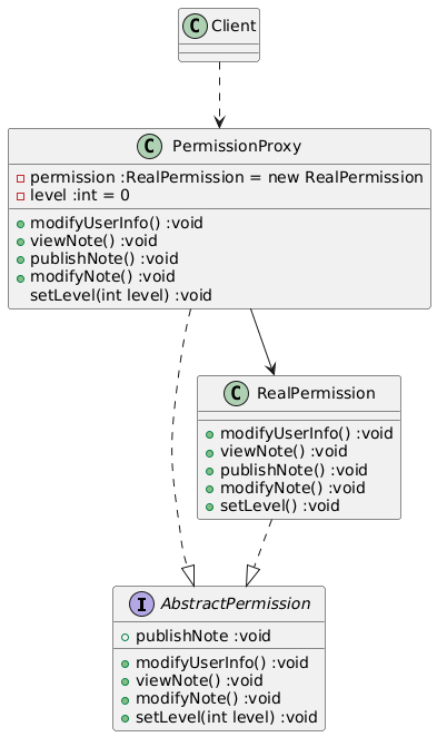 * 在一个论坛中已注册的用户和游客的权限不同,已注册的用户拥有发帖,修改自己的注册信息,修改自己帖子等功能;而游客只能看帖子,没有其他权限。使用代理模式中的保护代理,该代理用户控制对一个对象的访问,可以给不同的用户提供不同的使用权限。
