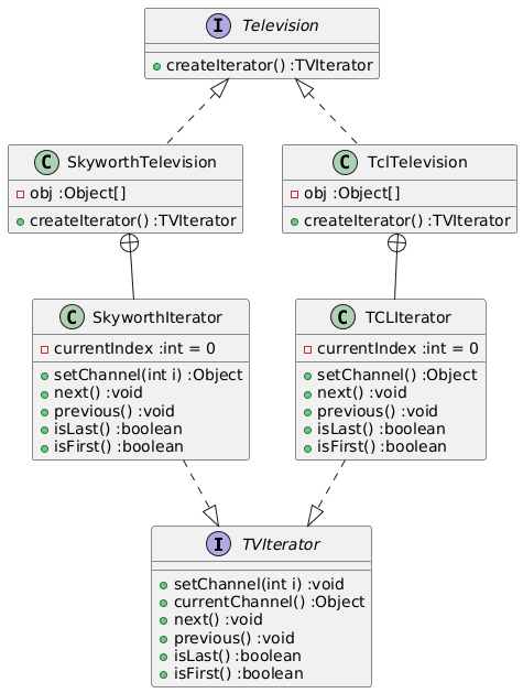 * 电视机遥控器就是一个迭代器实例,通过它可以实现对电视机频道集合的遍历操作。