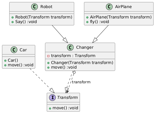 * 如变形金刚在变形之前是一辆汽车,它可以在陆地上移动。当它变成其人之后除了能狗仔陆地上移动之外还可以说话;如果需要,它还可变成飞机,除了在陆地上移动还可以在天空中翱翔。