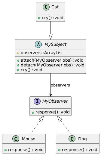 * 假设猫是老鼠和狗的观察目标,老鼠和狗是观察者,猫叫老鼠跑,狗也跟着叫。